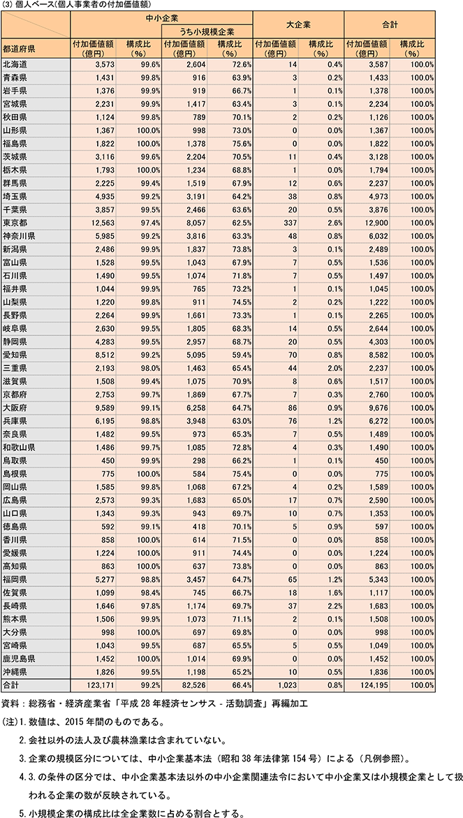 9表 都道府県別規模別付加価値額(民営、非一次産業、2015年)