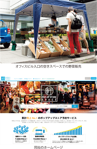 その手軽さ、便利さから、現在約4,000社以上が利用しており、その大半を個人事業主や中小企業が占めている。貸し出される空きスペースは、ランチの移動販売、雑貨・衣料品の出張販売、保険・不動産のプロモーション、あるいは、教室やサロンの開催等、様々な用途で利活用されている。