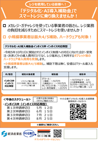 - 補助金によっては、公募開始時期が決まった後にチラシを掲載する場合がありますので、ご注意ください。