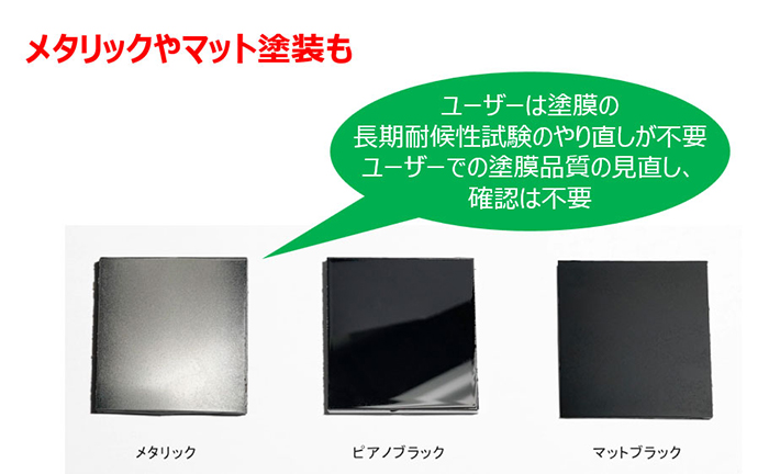 ・高い外観品質: 一般的なエナメルやクリヤー塗料だけでなく、アルミ粒や骨材が含まれるメタリックやマット塗料にも対応