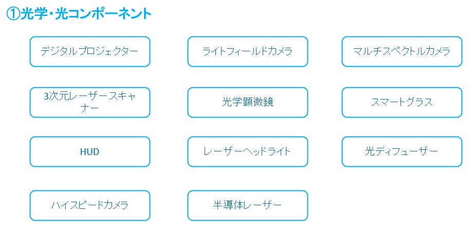 | 対象となる産業分野 | 医療・健康・介護、環境・エネルギー、航空・宇宙、自動車、ロボット、農業、産業機械、情報通信、スマート家電、食品、電池、半導体、工作機械、エレクトロニクス、光学機器 |