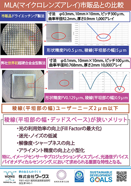 -超硬合金金型を用いた製法を開発し、従来困難であったガラス製両面MLAの安定成形を実現。
