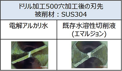 -SUS304等の発熱材料において工具摩耗量を既存切削液と同等レベルに抑制