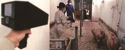 対象が豚なので、実験がそう簡単にできない。例えば工業製品が対象であれば、目の前に持ってきて計測ができるが、生きている豚は豚舎にしかいない。共同研究開発者の農研機構にデータをとってもらったり、我々自身もかなりの回数現場に入った。豚コレラが流行っていたため、外部の人間をできるだけ入れないようにしている中、豚舎に入らせていただき、(現場の人はみなやっていることだが)豚舎への出入り前には必ずシャワーを浴び、機器を持ち込むにも紫外線で滅菌するなど、衛生管理を徹底した。苦労だとは思わないが、勝手がわからないだけに大変は大変であった。また、豚の病気ではなく、人間の病気(新型コロナウイルス感染症)が原因で豚舎に入れず、思うようにデータが蓄積できなかったのは想定外だった。