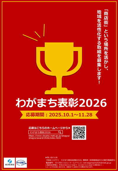 「地域にかがやく わがまち商店街表彰2026」(経済産業大臣表彰)を実施します。