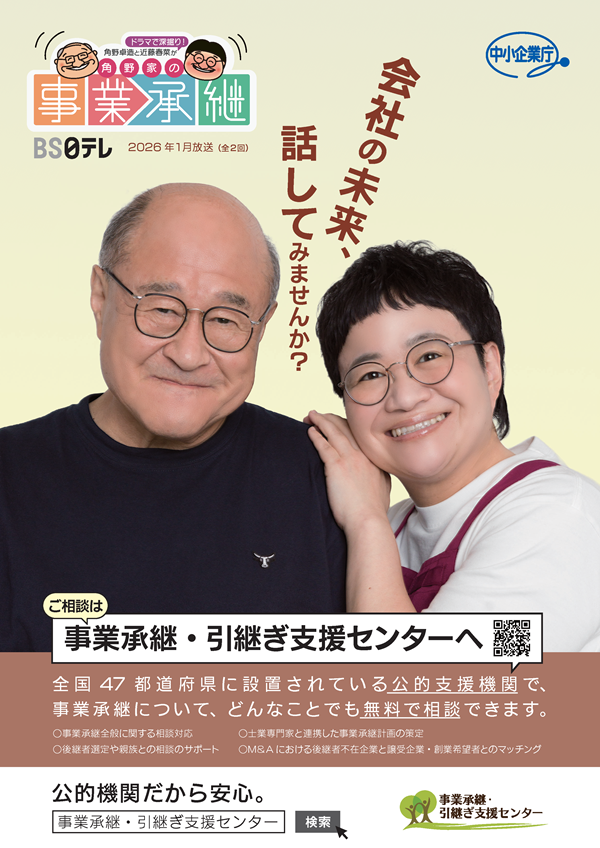 番組では、角野卓造さんと近藤春菜さんが親子役でミニドラマに出演し、事業承継の実例や解決策を紹介。さらにスタジオでは、ドラマのモデルとなった方々と専門家を迎え、事業承継のリアルな課題と未来へのヒントを深掘りします。